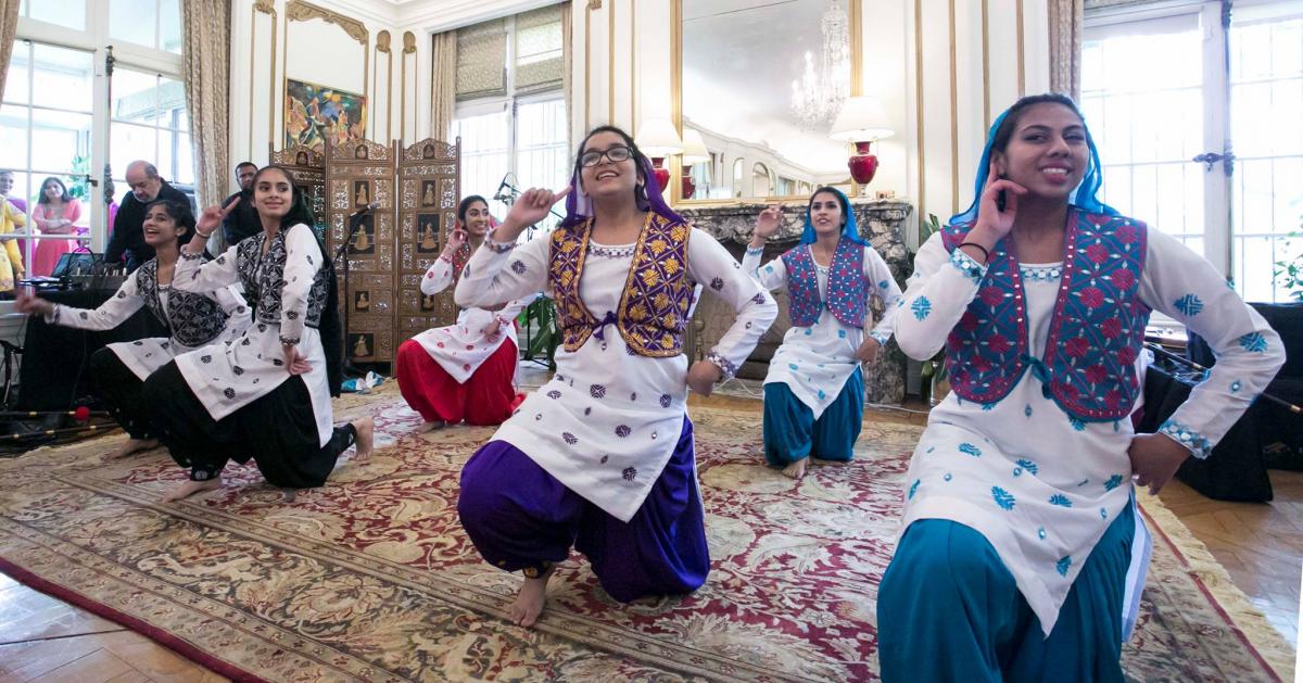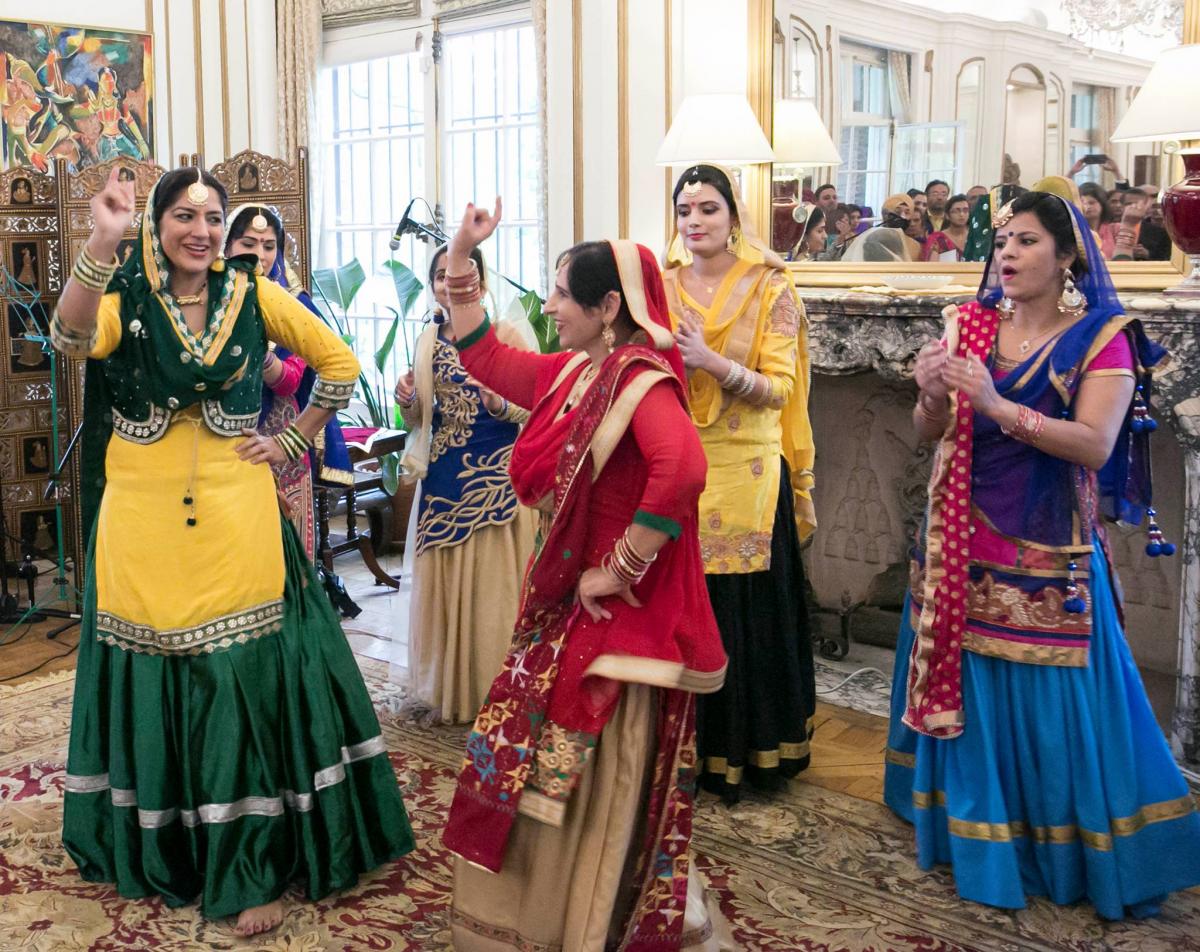 A Baltimore-based group performs the popular folk dance Gidha at the Baisakhi celebration in the Embassy Residence. Photo credit: Embassy of India, Washington, DC.