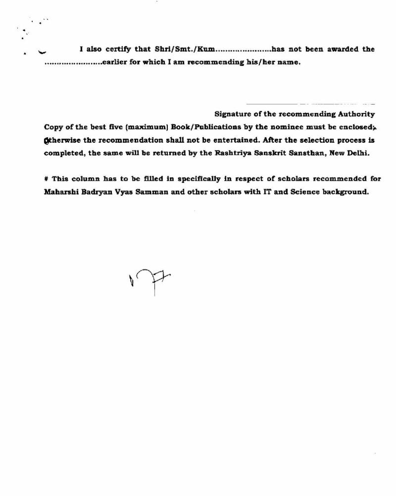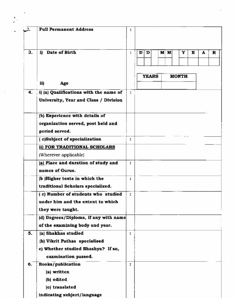 The eminent Scholars who have teaching experience, published works- number of books / articles published, research work and have kept the traditional Sanskrit, Classical Oriya, Classical Kannada, Classical Telugu and Classical Malayalam studies alive, should submit their nominations with appropriate information as applicable in the Proforma given below and sending it by 25th March 2018 by email to pic1.washington@mea.gov.in or by postal mail to Attaché (PIC), Embassy of India, 2107 Massachusetts Ave NW, Washington, DC 20008. Applications will be sent to Ministry of Human Resource Development (MHRD) for decision.